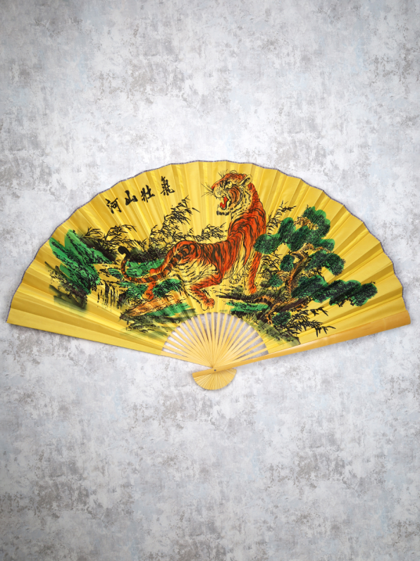 Веер 90 см бамбуковая основа Желтый с Тиграми / 622-13 /уп 52/ 7 фото