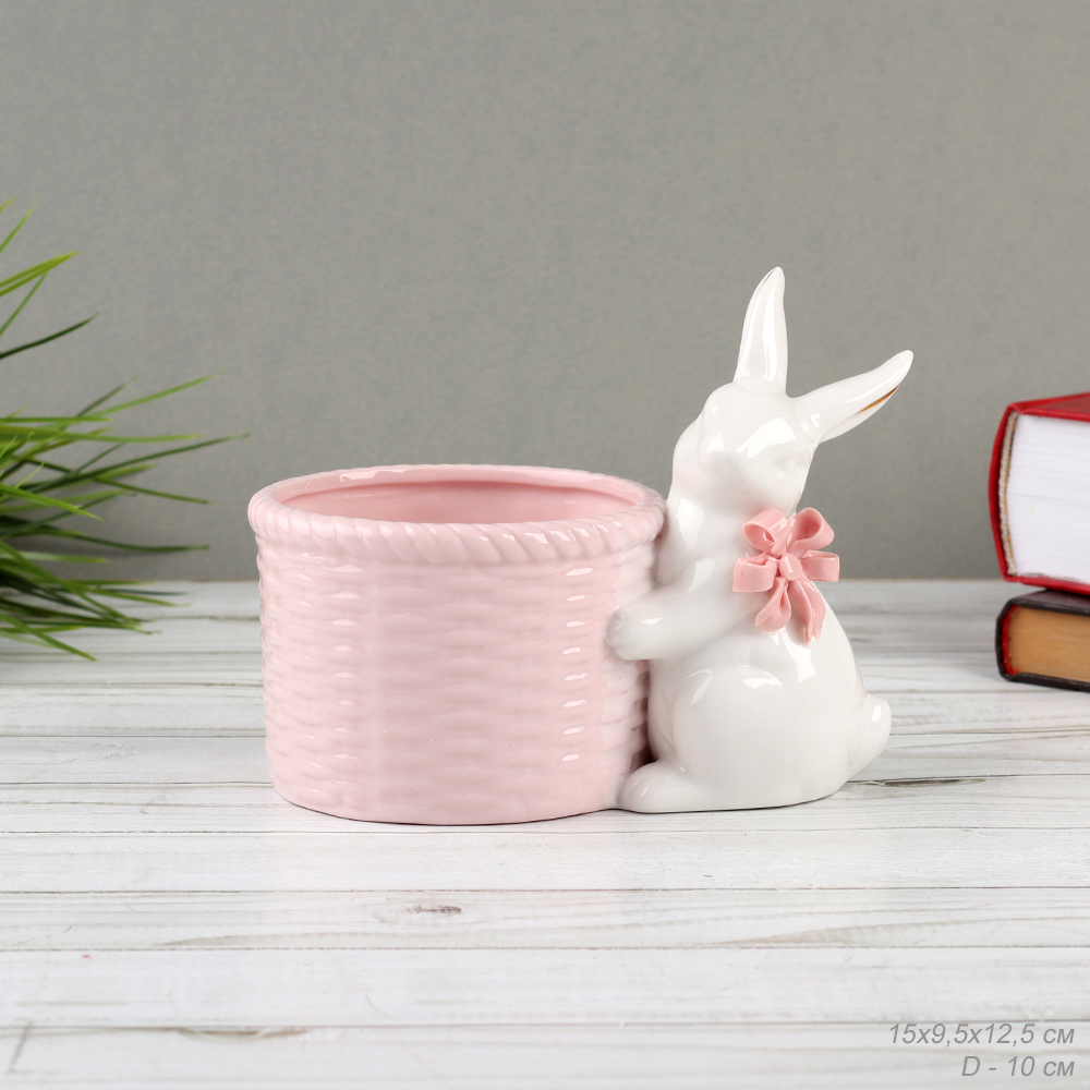 Фигурка кашпо розовое Кролик / 19083-2P /уп 24/ 3 фото