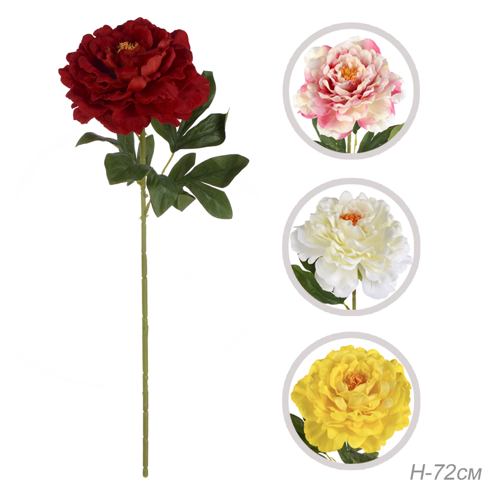 Цветок искусственный Пион 72 см / GT41-22 /уп 80/800/бархатное напыление (Жёлтый) 7 фото