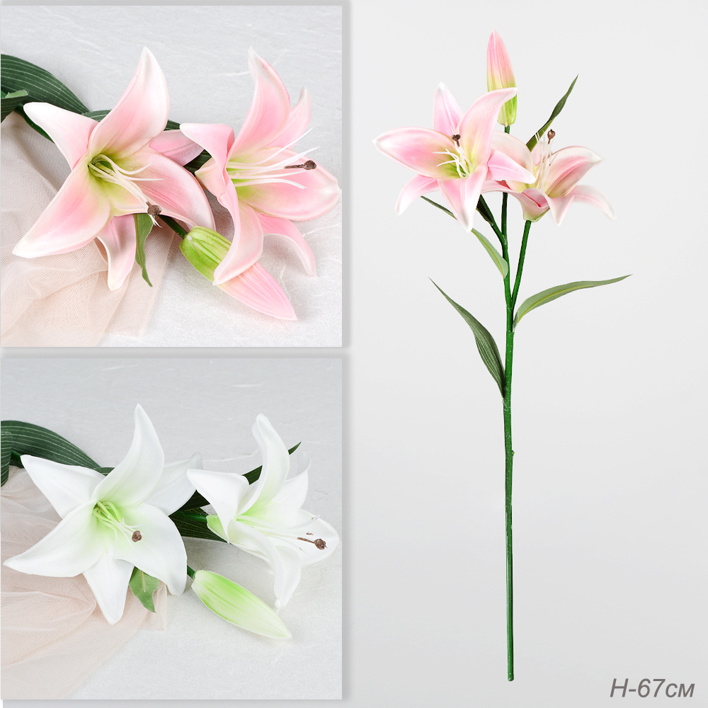 Цветок искусственный Лилия 67 см 3 бутона / J106 /уп 24/288/ латекс 4 фото