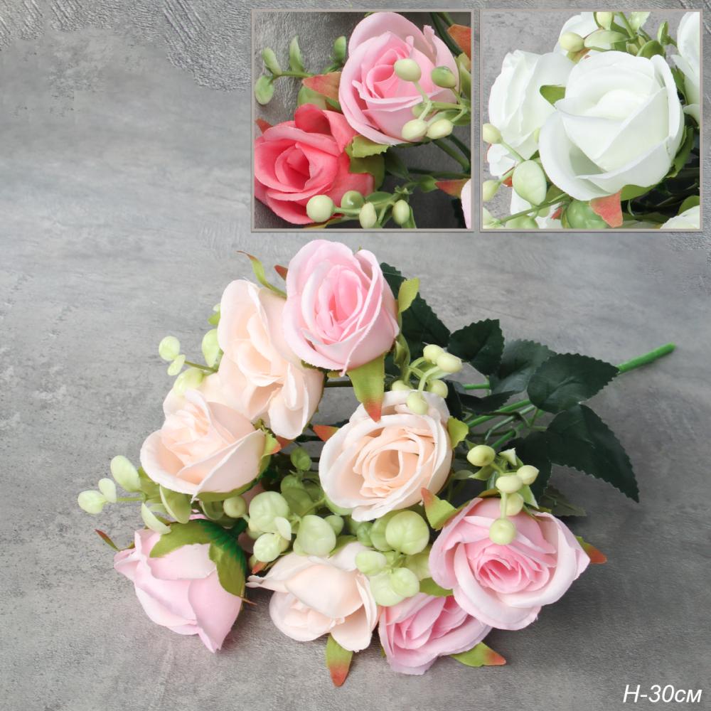 Цветок искусственный Букет роз 30 см / SGT-153 /уп 2/300/ (Розовый) 4 фото