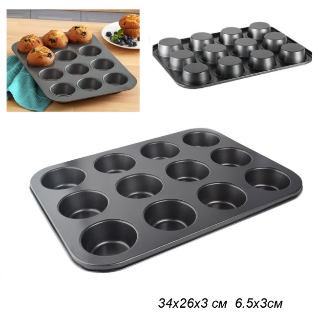 Форма для выпечки кексов и капкейков 12 ячеек 35х26 см / d-6,5;h-3 см / RSE-600 /уп 60/ 0.353