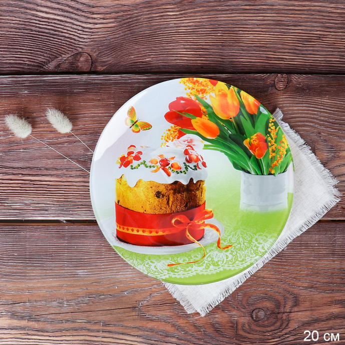 Тарелка круглая 20 см Пасха  /S3008 CC024 GREY /уп 6/48/ цветная коробка
