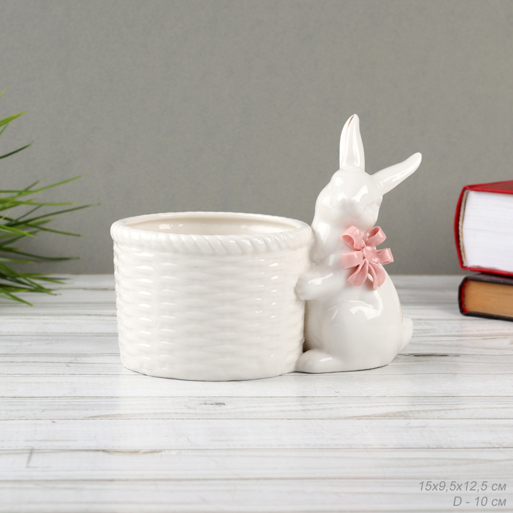 Фигурка кашпо белое Кролик 15х9,5х12,5 см / 19083-1W /уп 24/ 2 фото
