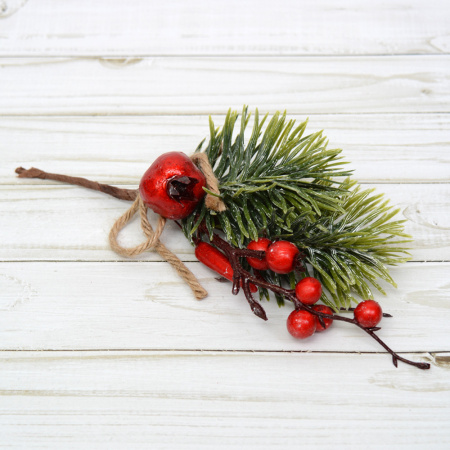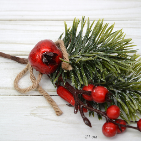 Ветка искусственная 21 см с шишками / N127-298 /уп 100/500/Новый год 3 фото