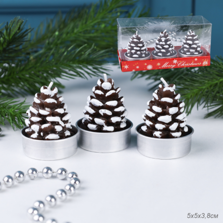 Свеча 3 штуки набор Шишка / NN-3SH /уп 120/Новогодняя