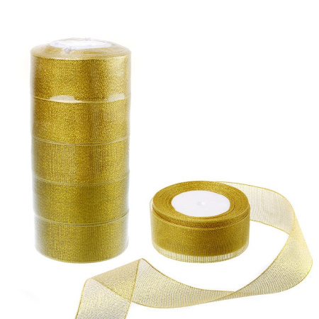 Лента органза декоративная 25ярд х 4см золото / Z629 /уп 75/ШТУЧНО