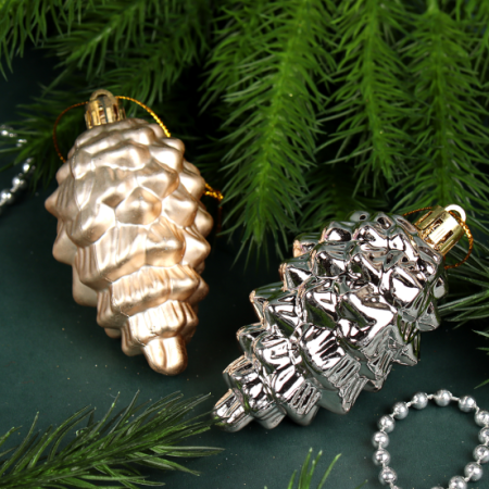 Елочное украшение Шишка 8 штук 8 см медный / 5620-A /уп 72/