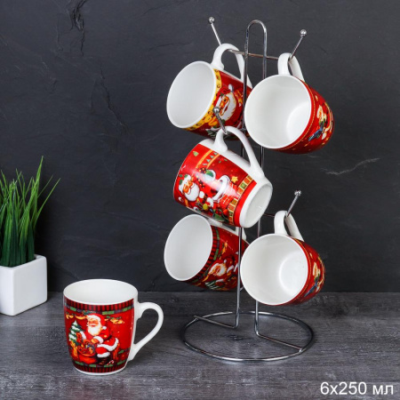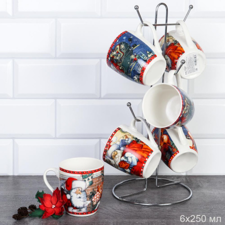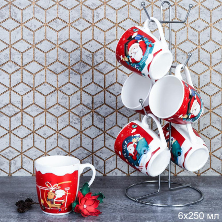 Кружка 6 штук на металлстенде 250 мл Новый год / XP021 /уп 96/