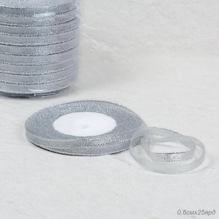 Лента органза декоративная 25ярд х 0,6см 10 штук набор / S635 /уп 150/серебро