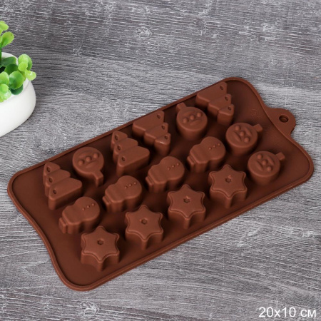 Форма для конфет мармелада и льда 15 ячеек силиконовая Новогодняя / HL-263 /уп 300/ 21*11*1,5/ 0.045/