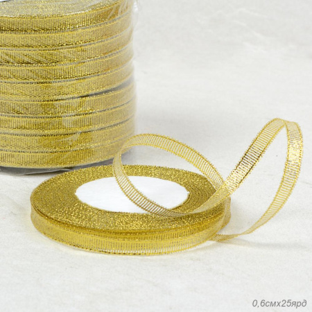 Лента органза декоративная 25ярд х 0,6см 10 штук набор / G635 /уп 150/ золото