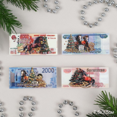 Магнит Лошадь на деньгах 7,5х3,5 см / 25323 /уп 24/720/ Символ года 2026