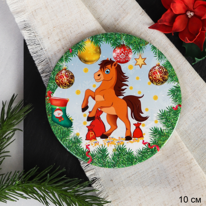 Подставка под горячее, кружку 10 см Символ Года 2026 Лошадь / КD021 /уп 144/ новогодняя/746298