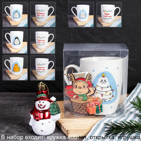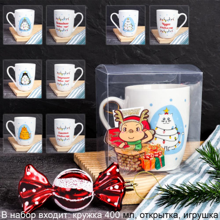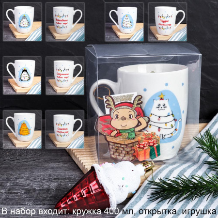 Подарочный набор Кружка 400 мл+ ёлочная игрушка Конфета / CAT-517-mix /уп 72/ кружка новогодняя/ в подарочной упаковке