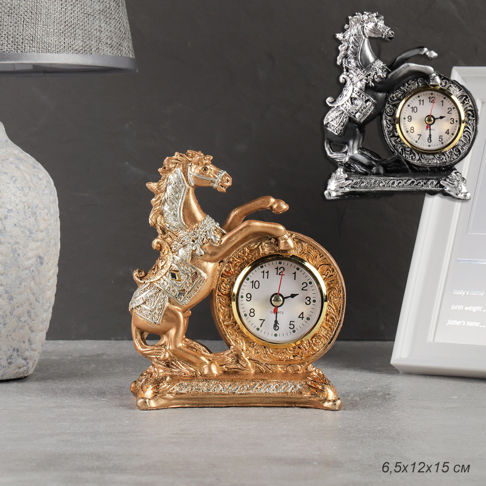 Часы статуэтка Лошадь 15 см / 7029-B /уп 60/серебро 3 фото