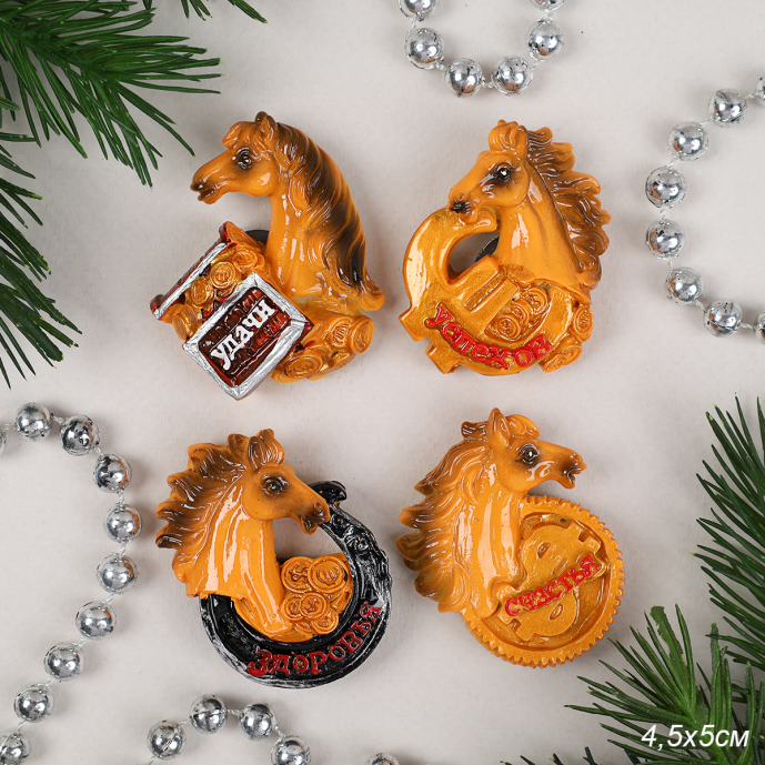 Магнит Лошадь с подковой 4х5 см / 25339-1 /уп 40/960/ Символ года 2026 2 фото
