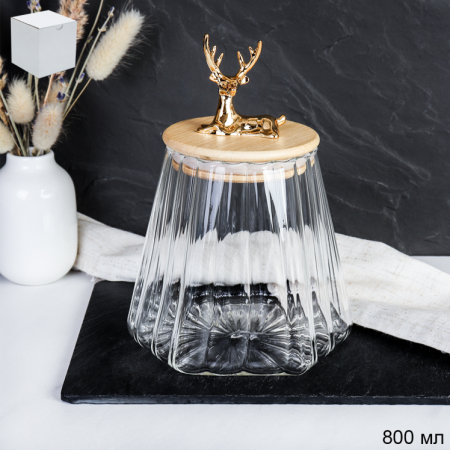 Банка для хранения бамбуковая крышка с фигуркой 800 мл 13х11 см / 9860 /уп 48/ новогодняя