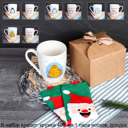 Подарочный набор Кружка 400 мл+ носки / CAT-517-mix /уп 72/ кружка новогодняя/ в подарочной упаковке/