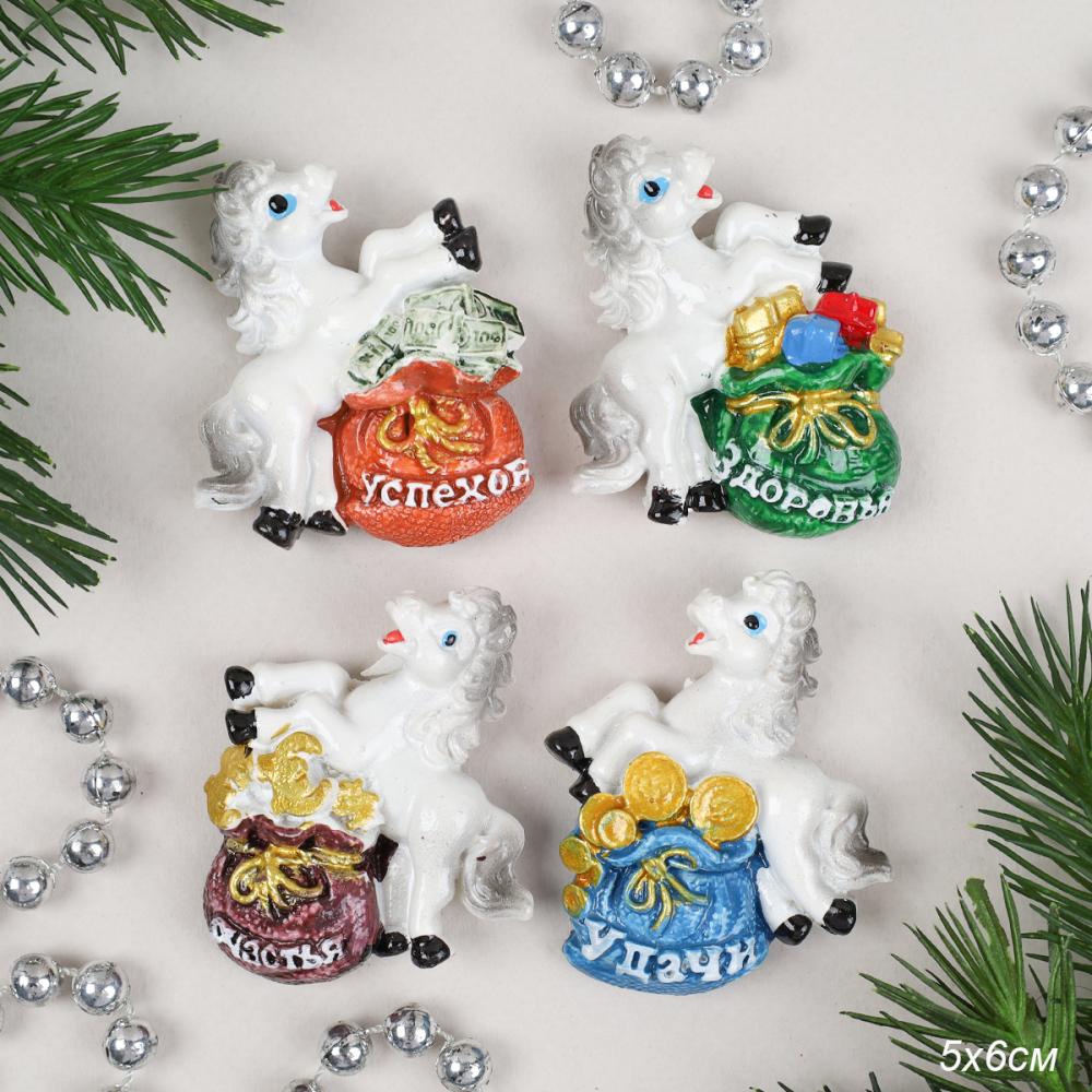 Магнит Лошадь белая с деньгами 5х6 см / 25272-2 /уп 48/960/ Символ года 2026