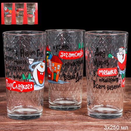 Стакан 3 штуки 250 мл Новогодние пожелания / Д045/175 /уп 12/ высокий Новый год