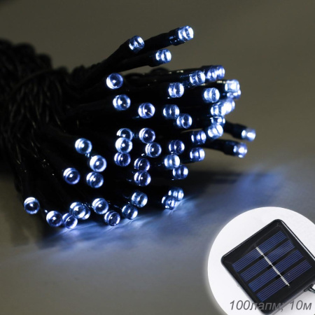 Гирлянда с питанием от солнечных элементов 10 м 100 лампочек 6 режимов / DPM-5801 /уп 100/ белый свет 6 фото