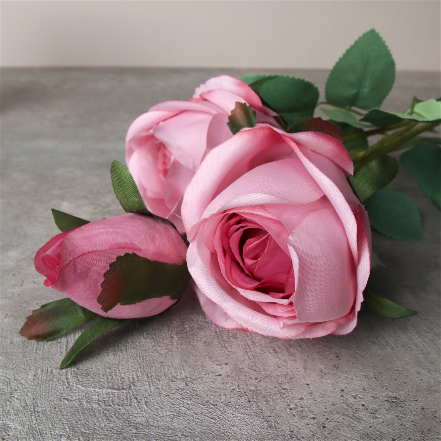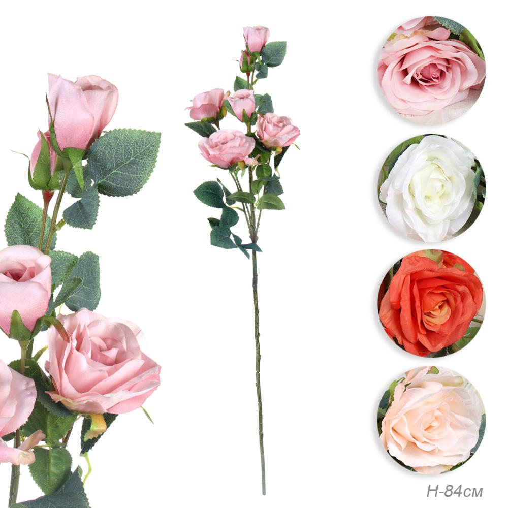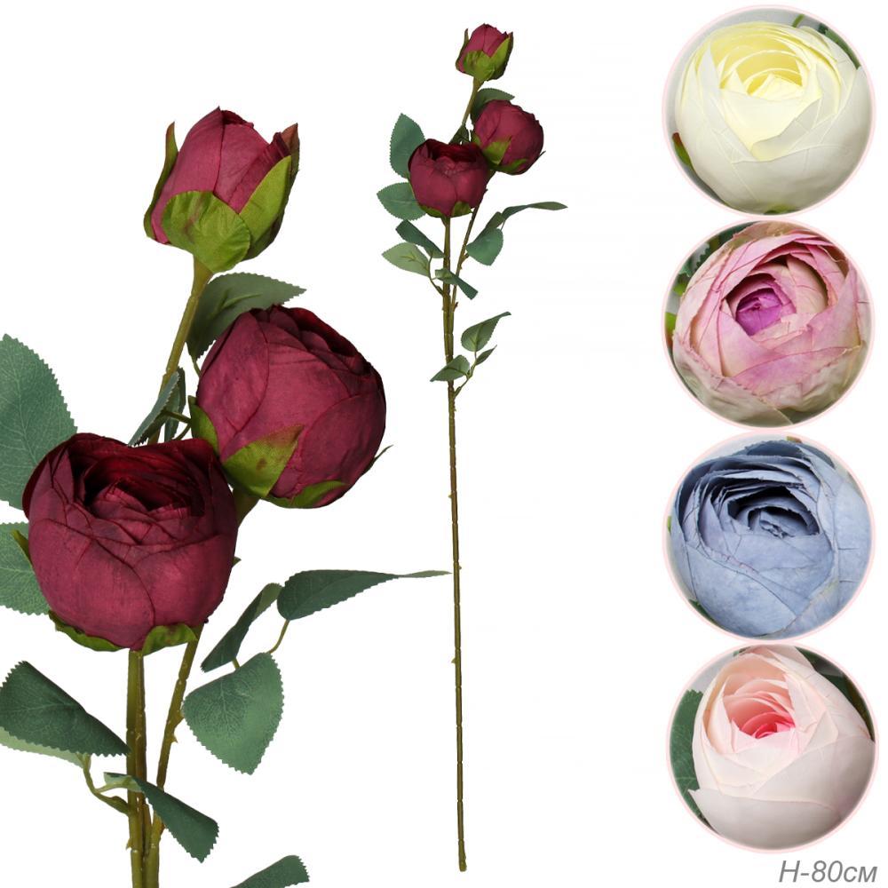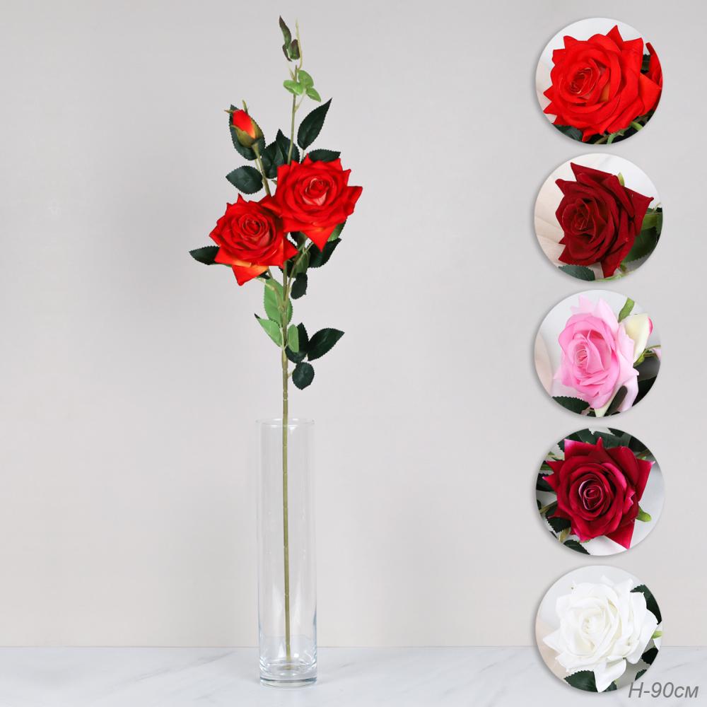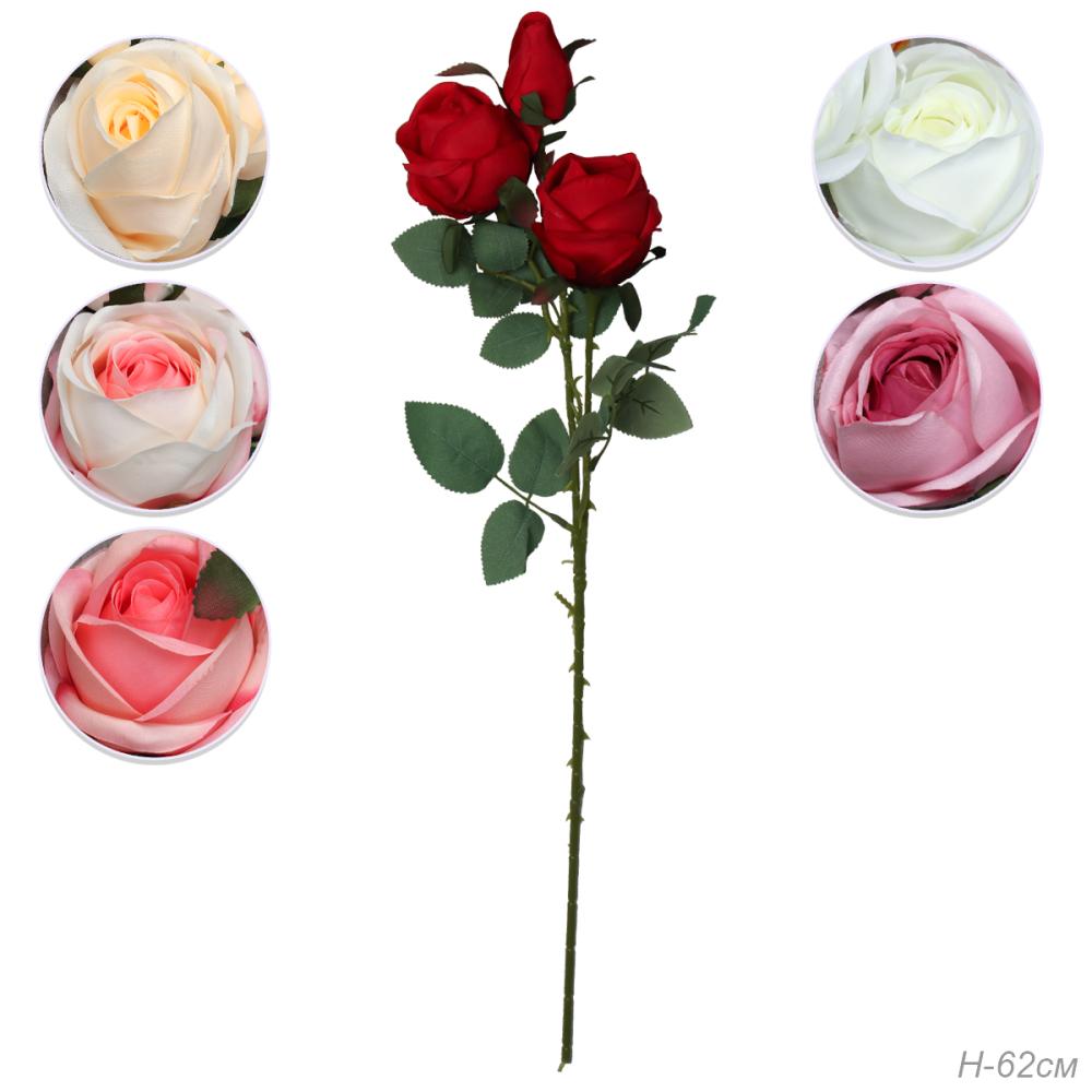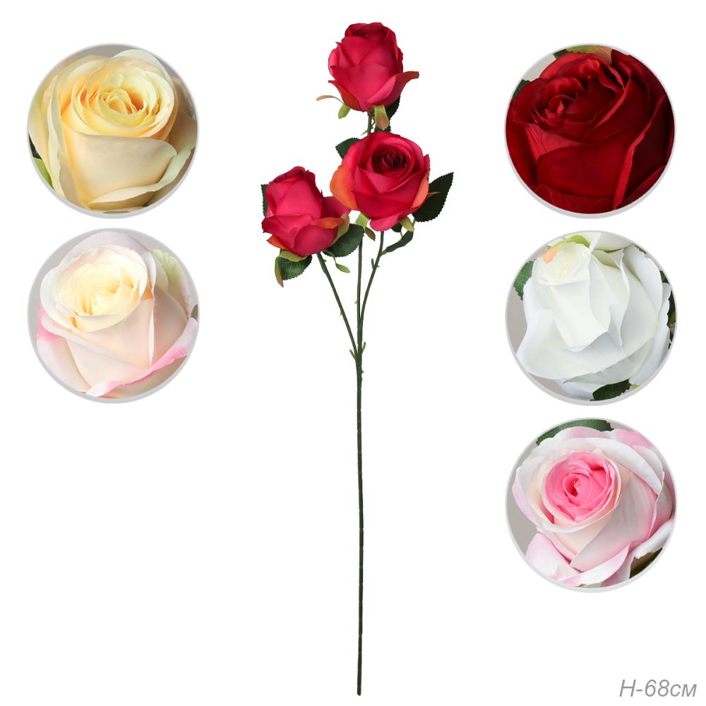 Цветок искусственный Роза кустовая 80 см три бутона / CRK-80 /уп 600/ 7 фото