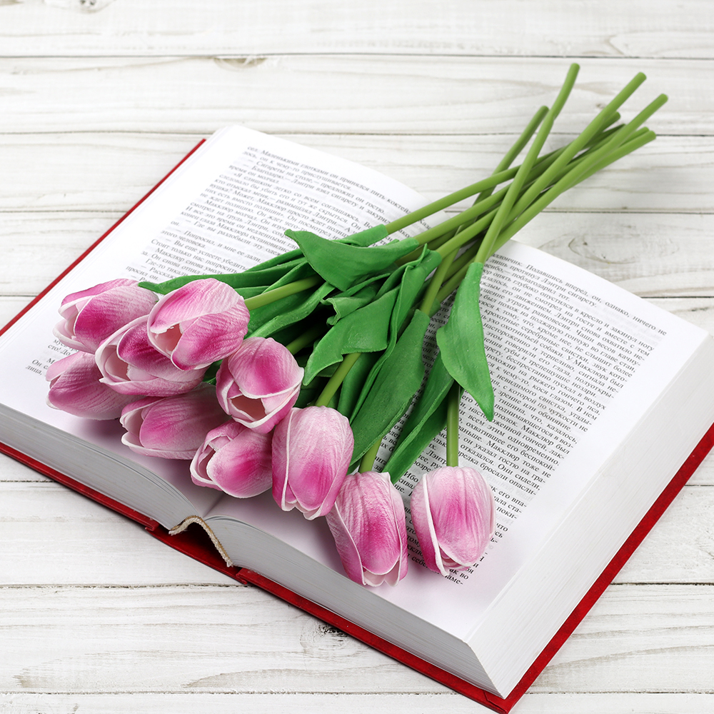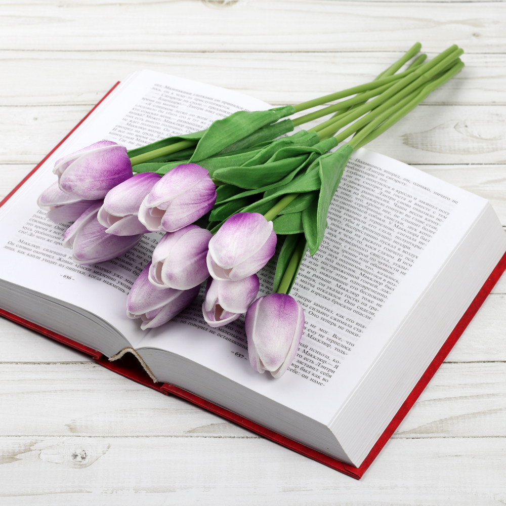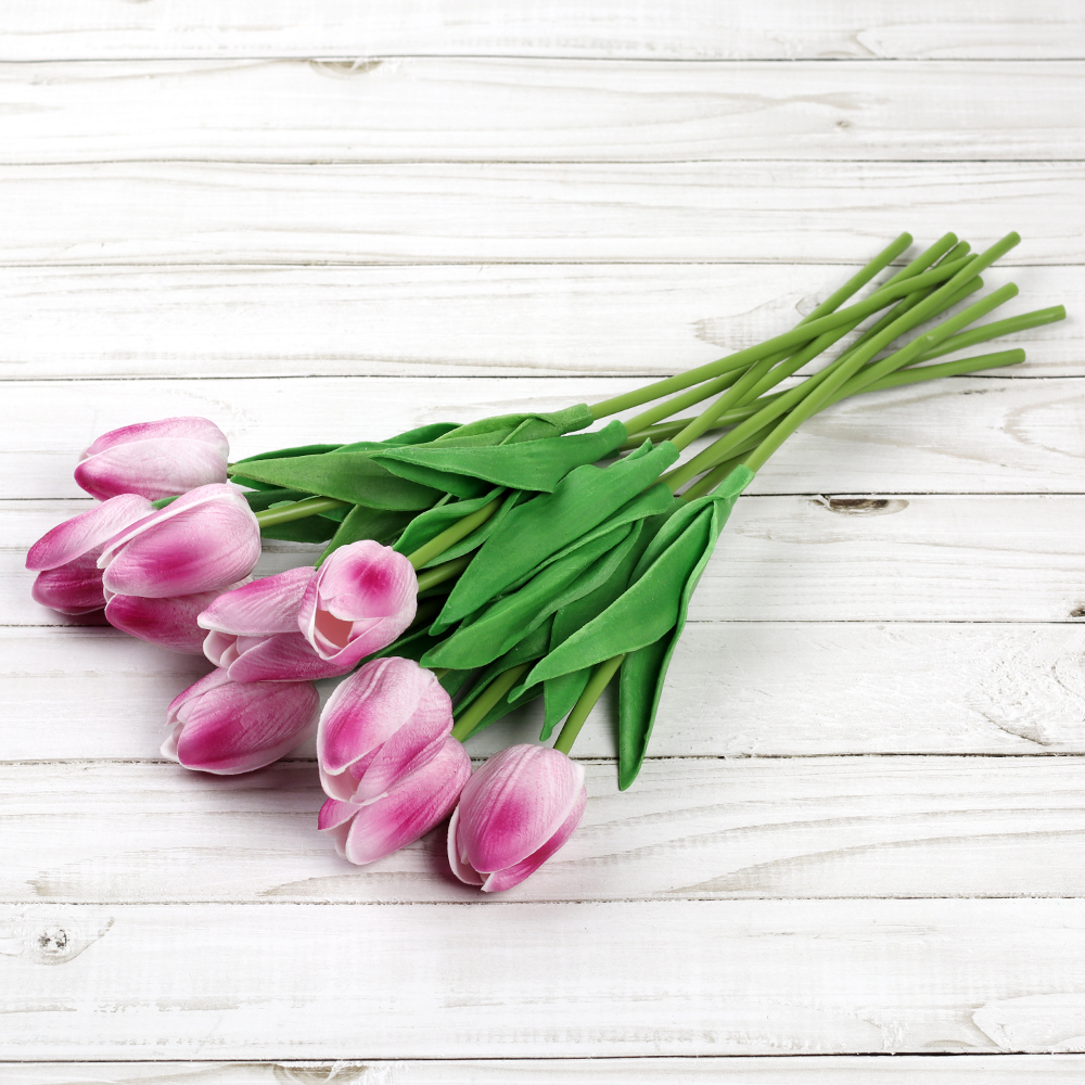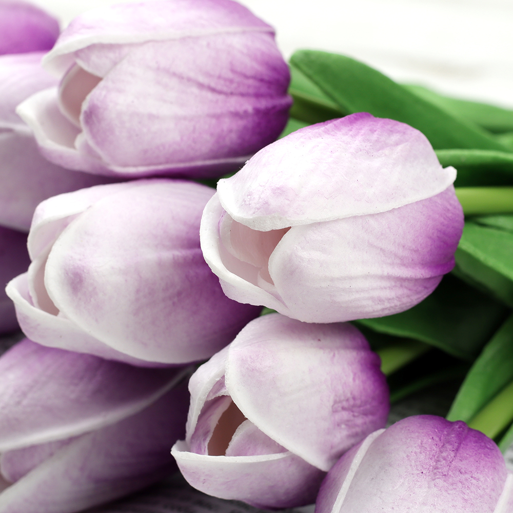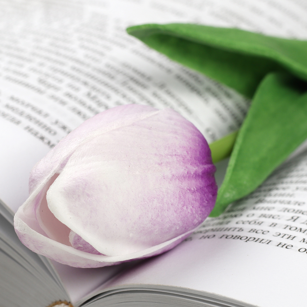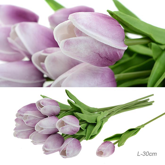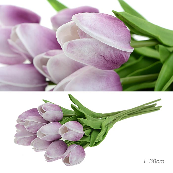 Цветок искусственный Тюльпан 30 см бело-фиолетовые / 1205 /уп 10/200/1200/ латэкс 7 фото