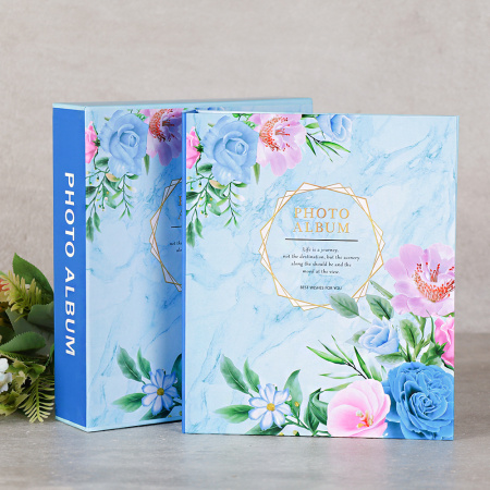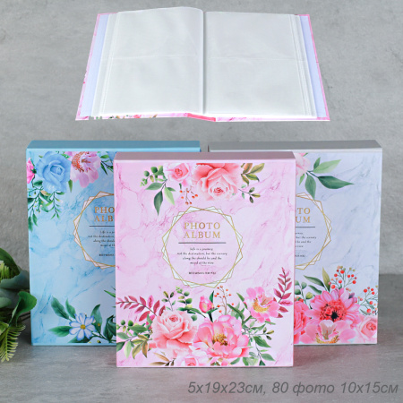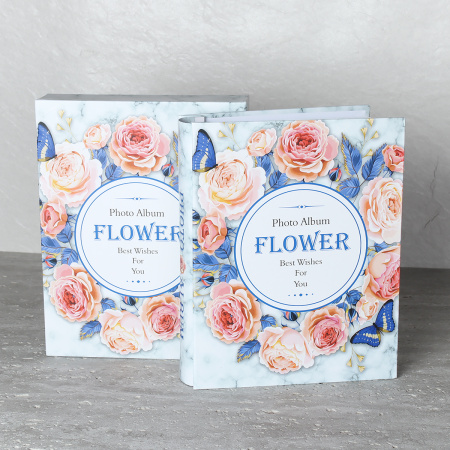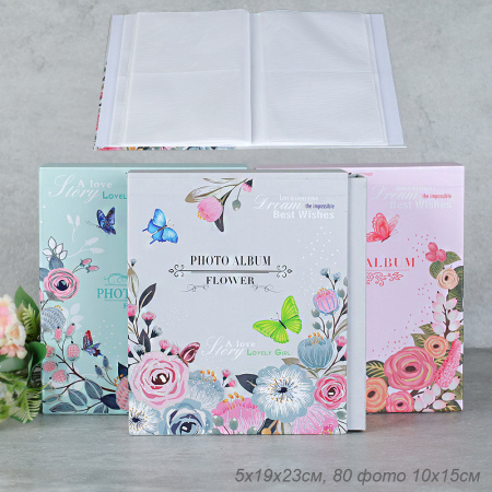 Фотоальбом 80 фото 10x15 Цветы / 9351 /уп 48/ 20 листов (Голубой) 5 фото