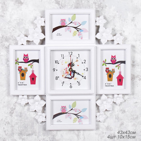 Фоторамка коллаж с часами / 083 /уп 18/ 4 фото 3 фото
