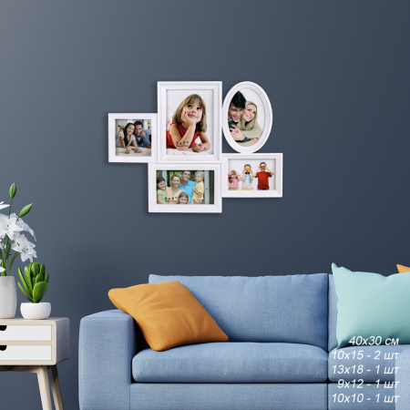 Фоторамка коллаж Семья 33х18 / 031-3 /уп 60/ белая 5 фото