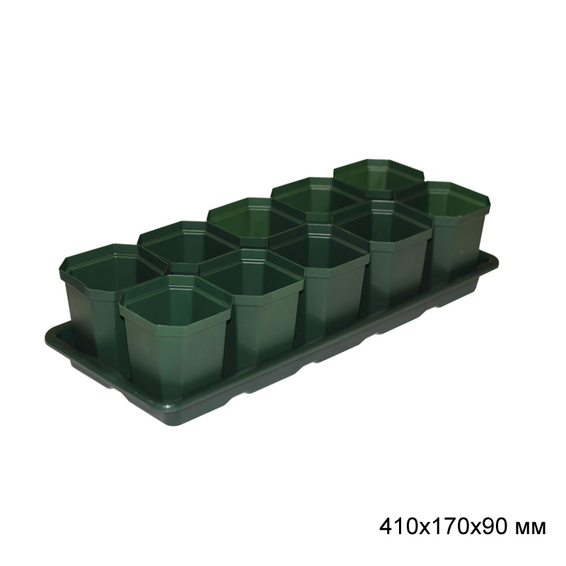 Набор для рассады с подставкой 10 горшочков  410х170х90 мм/ М1010 /уп 11/