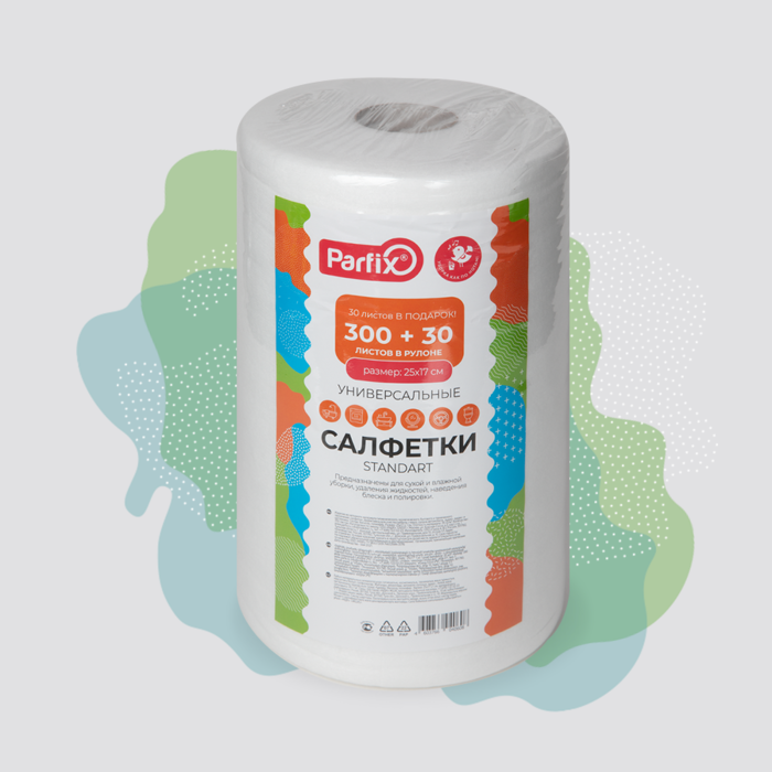 Полотенца-салфетки Parfix STANDART Бытовые Универсальные из нетканого материала 300+30 шт. в рулоне 250Х170 мм (40608)