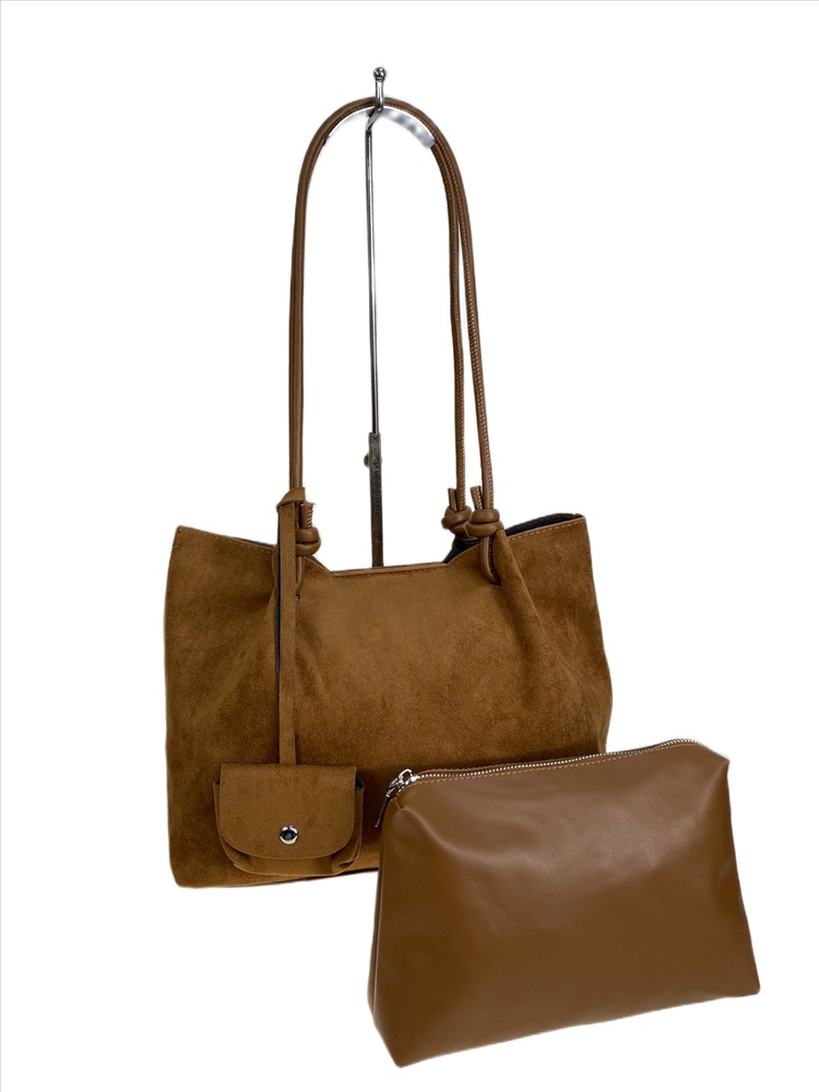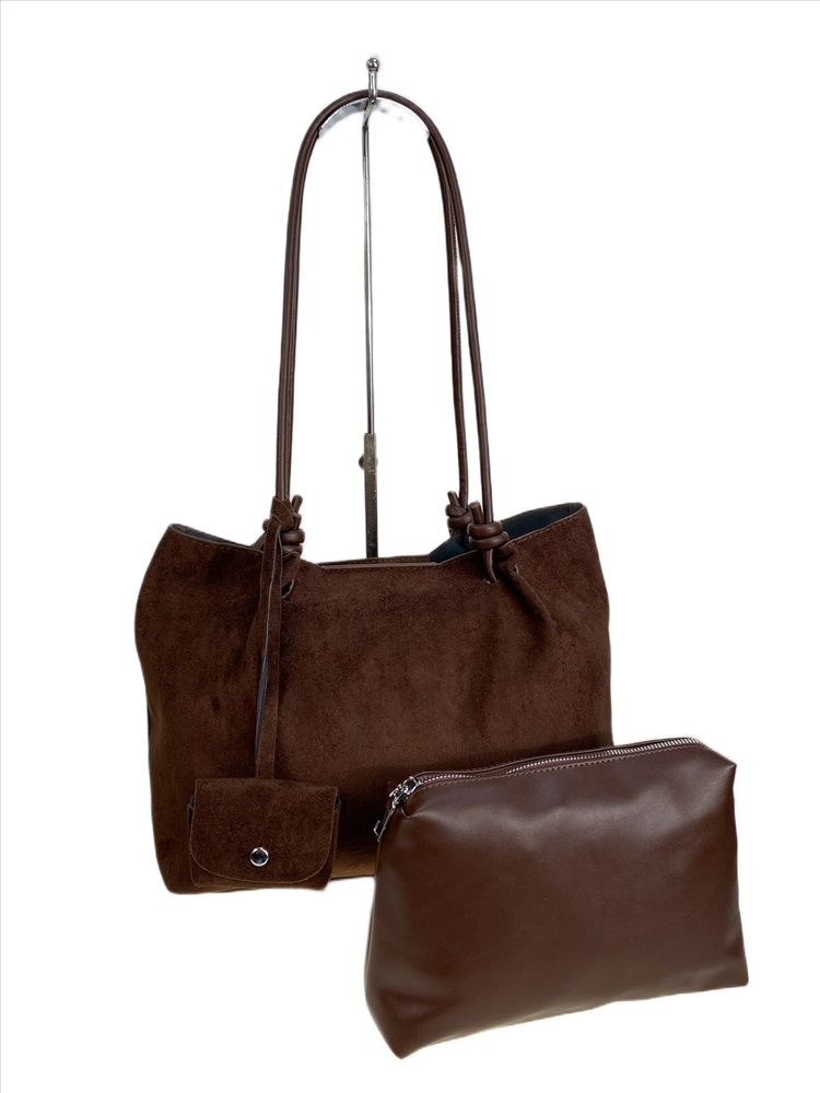 Женская сумка из искусственной замши, цвет коричневый 2 фото