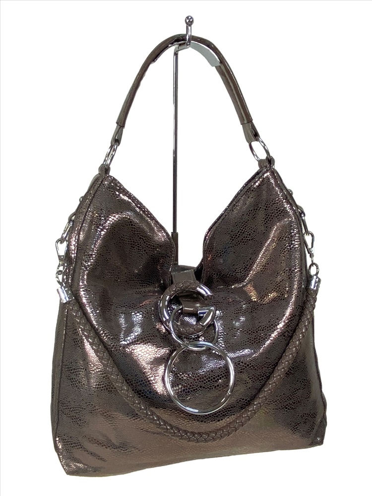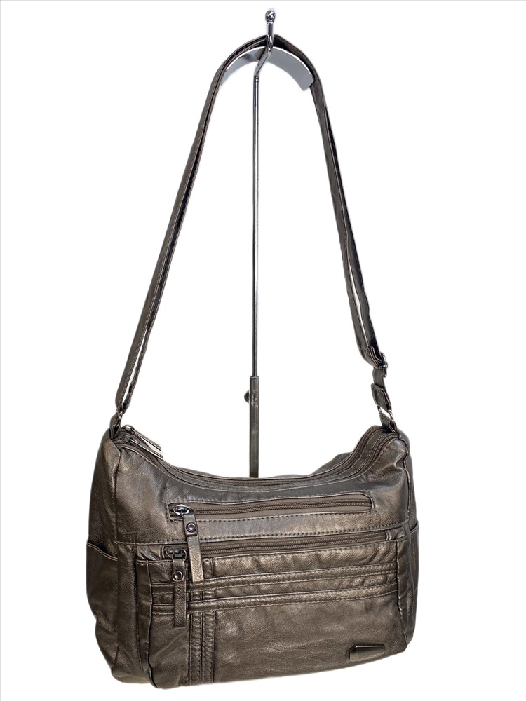 Женская сумка из искусственной кожи, цвет бронза 2 фото