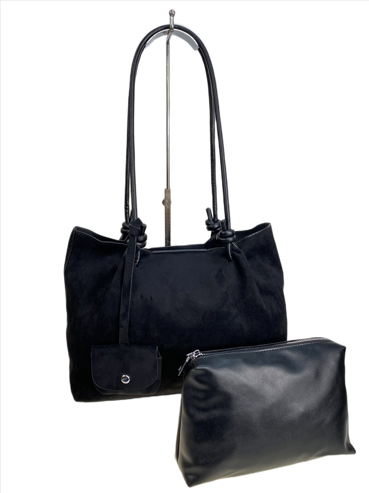 Женская сумка из искусственной замши, цвет черный 2 фото