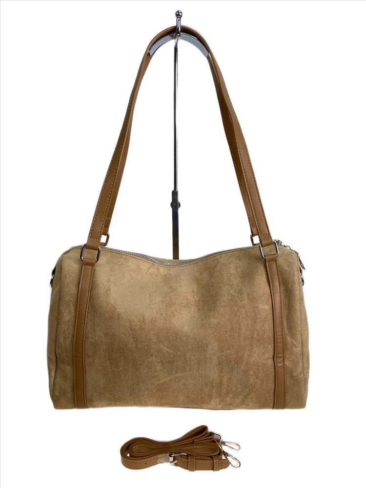 Женская сумка из искусственной замши, цвет бежевый 2 фото