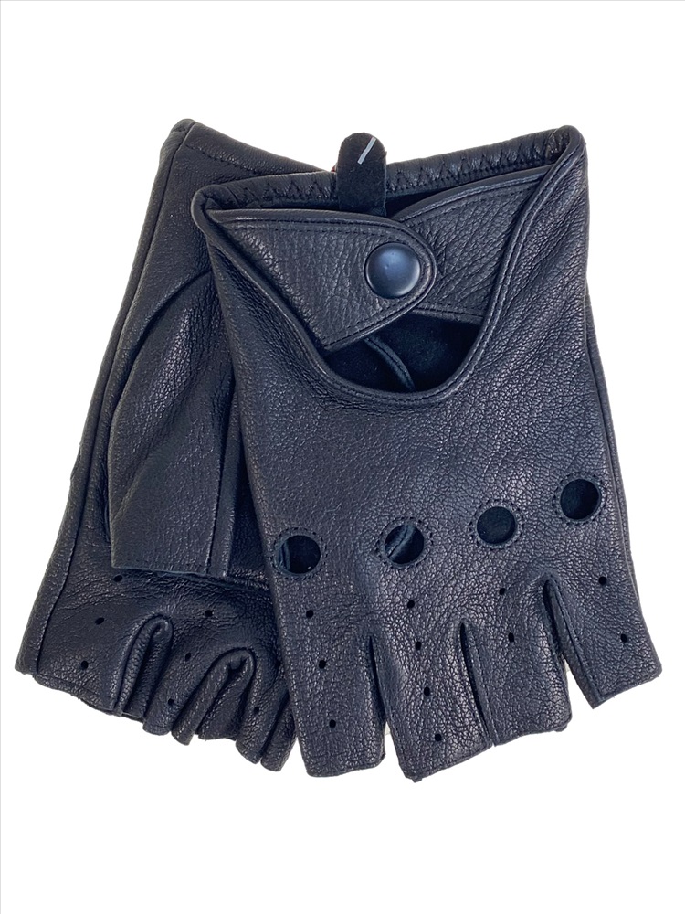 Перчатки - митенки без пальцев демисезонные, из натуральной кожи, цвет черный