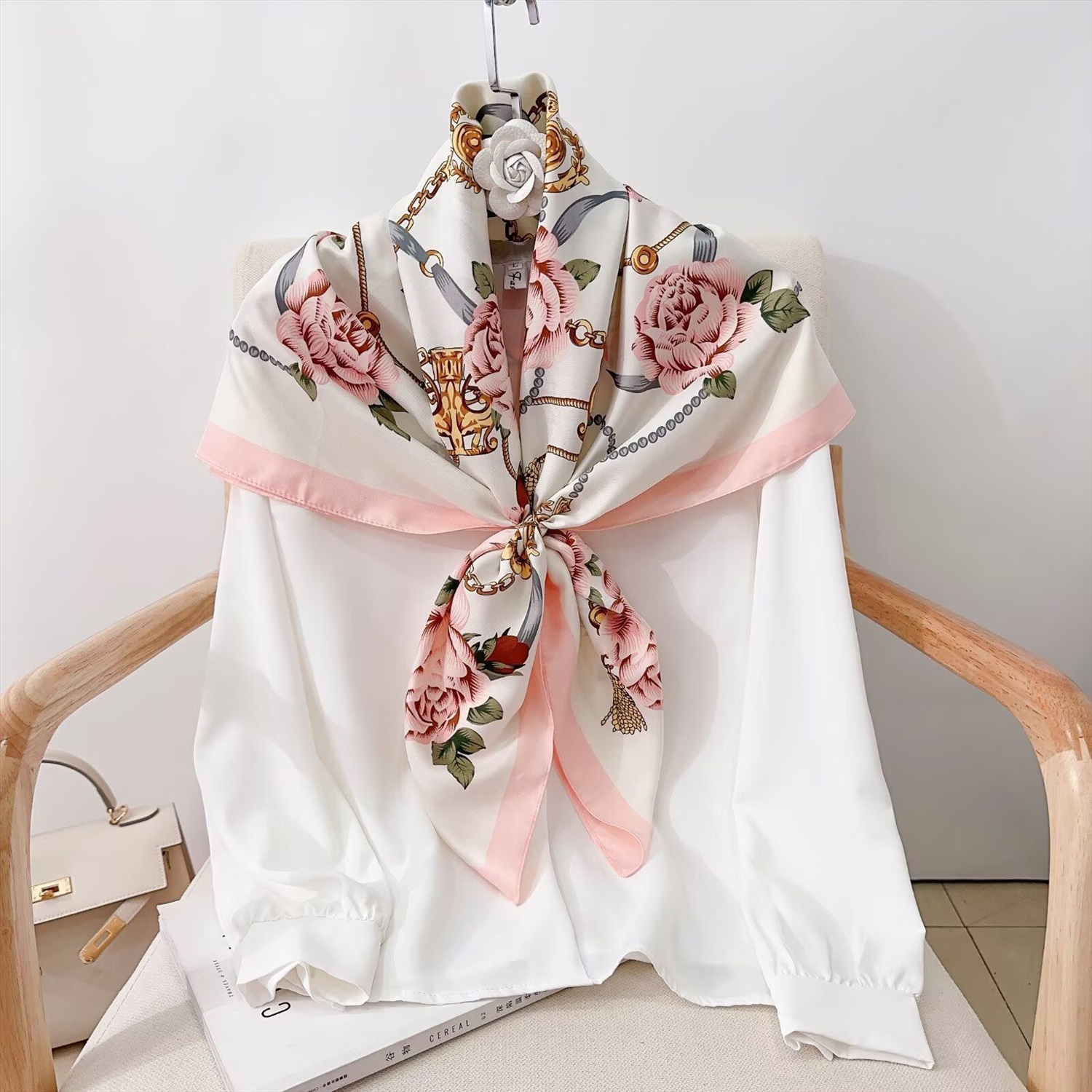 Платок косынка на голову и шею, хлопок, цвет бело-розовый