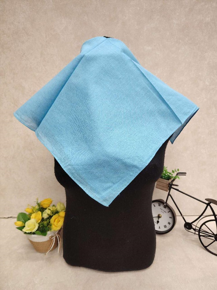Платок косынка на голову и шею, хлопок, цвет голубой