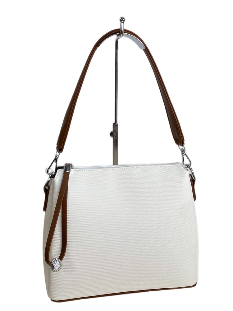 Женская сумка из искусственной кожи, цвет белый с шоколадом