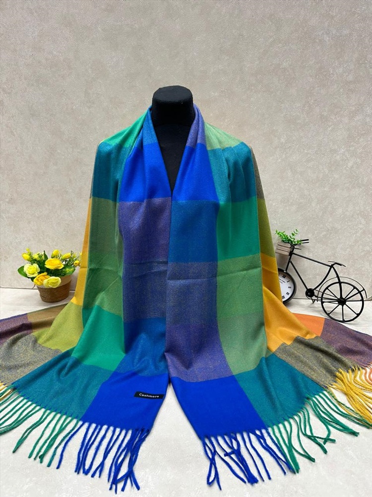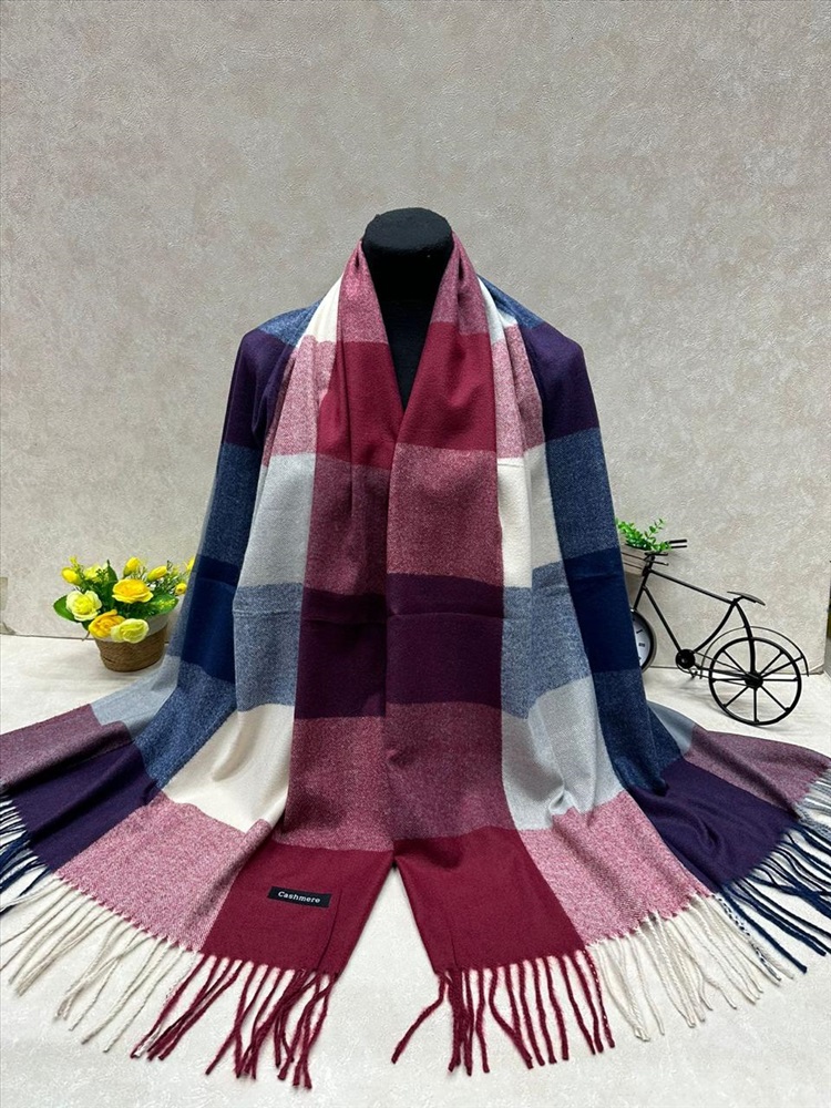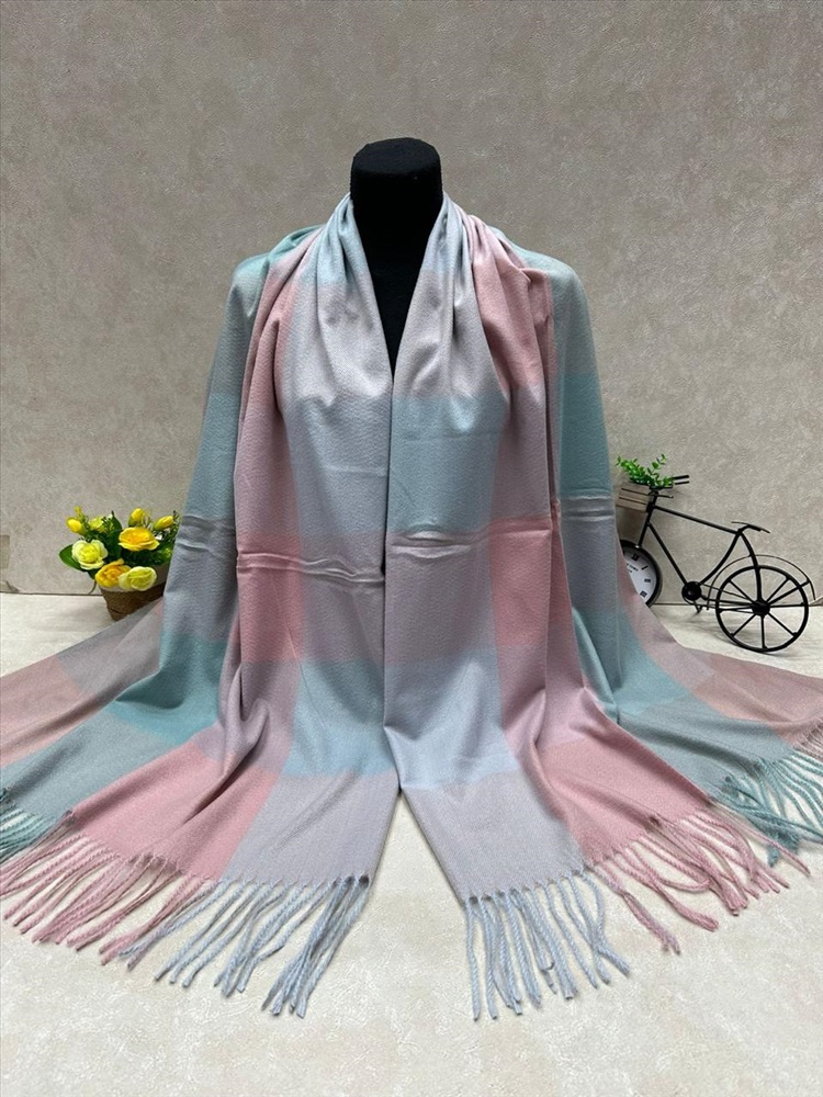 Платок в клетку из кашемира, мультицвет