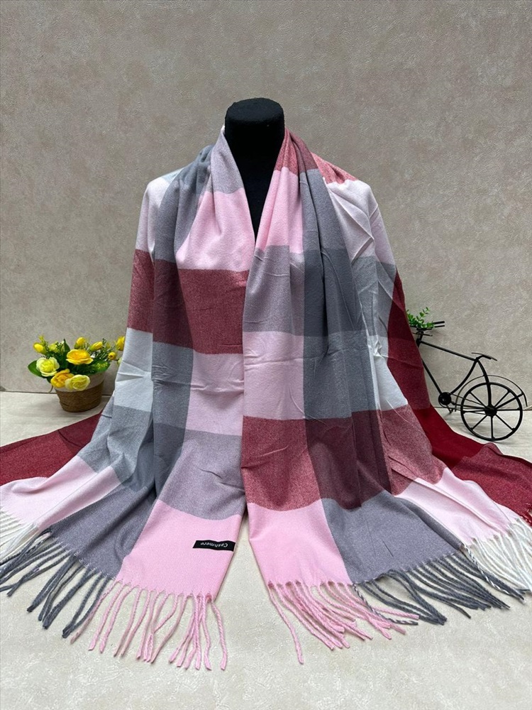 Палантин в клетку из кашемира, мультицвет