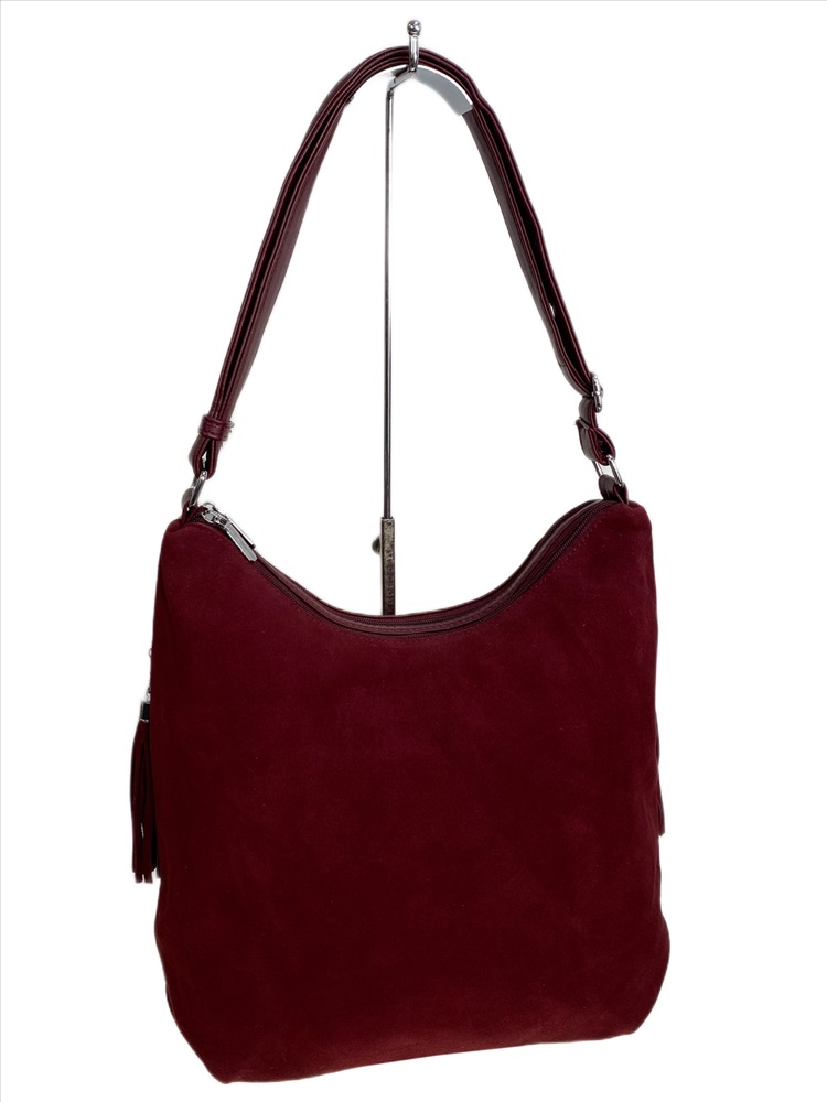 Женская сумка из натуральной замши и искусственной кожи, цвет бордовый 2 фото