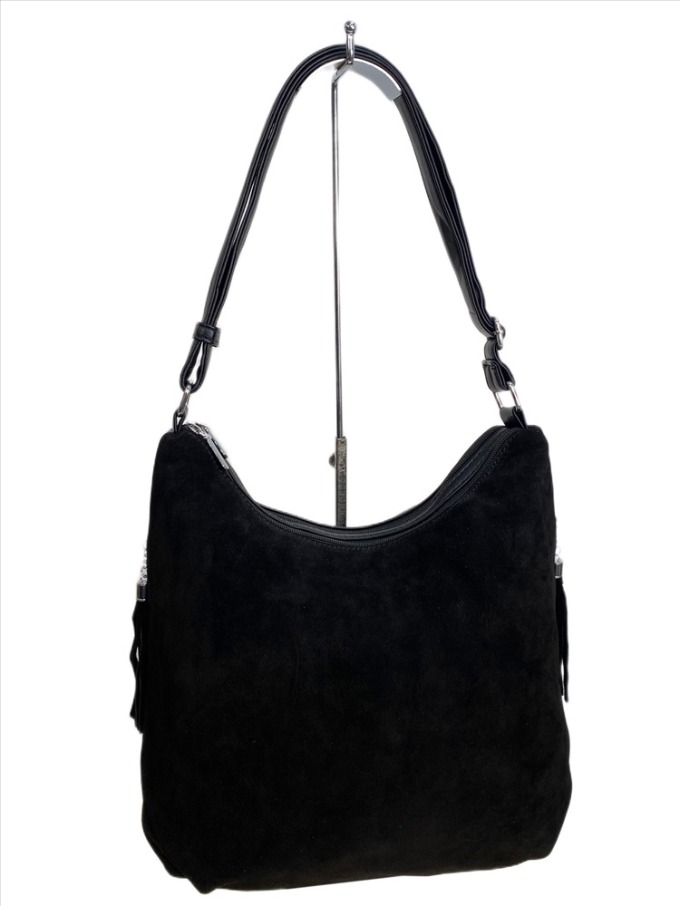 Женская сумка из натуральной замши и искусственной кожи, цвет черный 2 фото