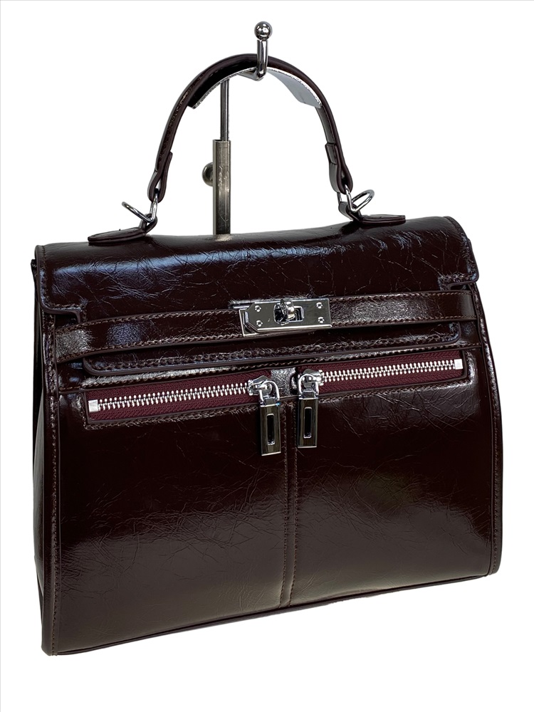 Женская сумка из искусственной кожи, цвет коричневый 2 фото