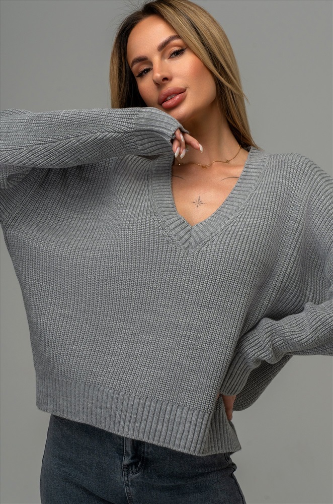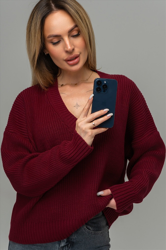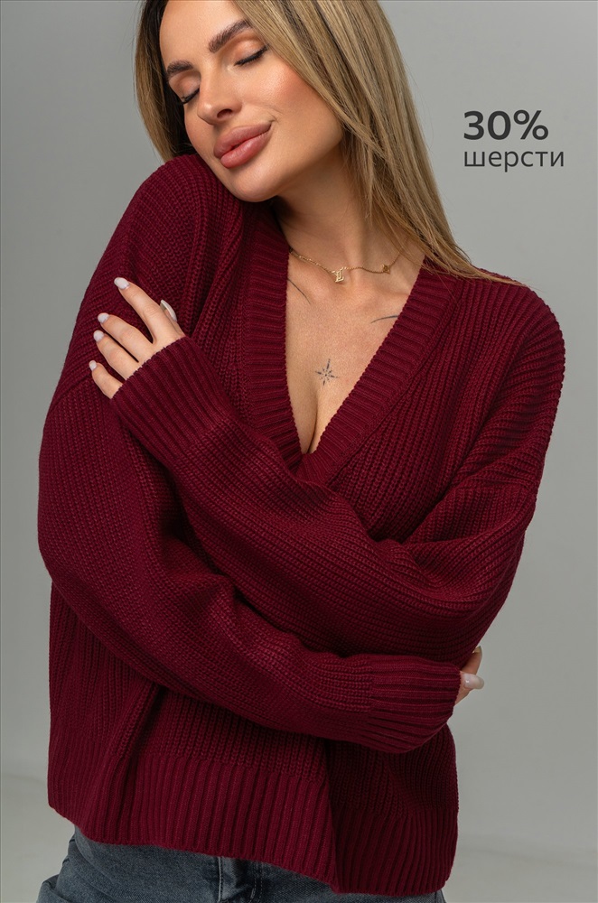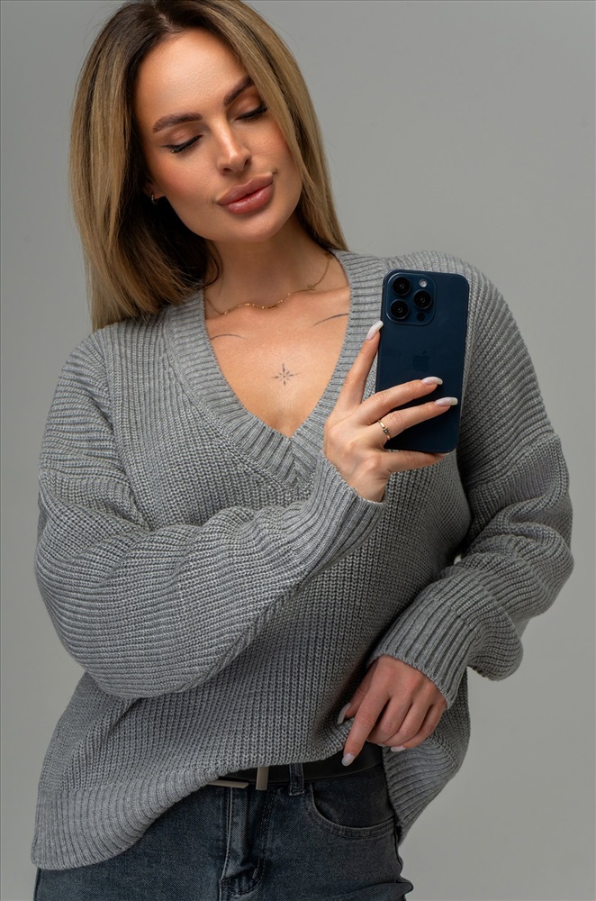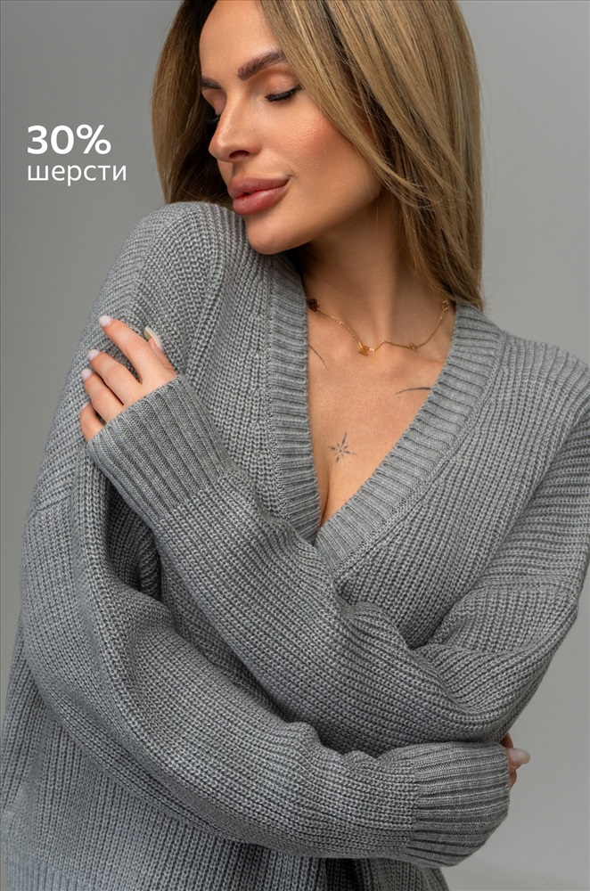 Женский удлиненный джемпер оверсайз с V-вырезом Happyfox 10 фото