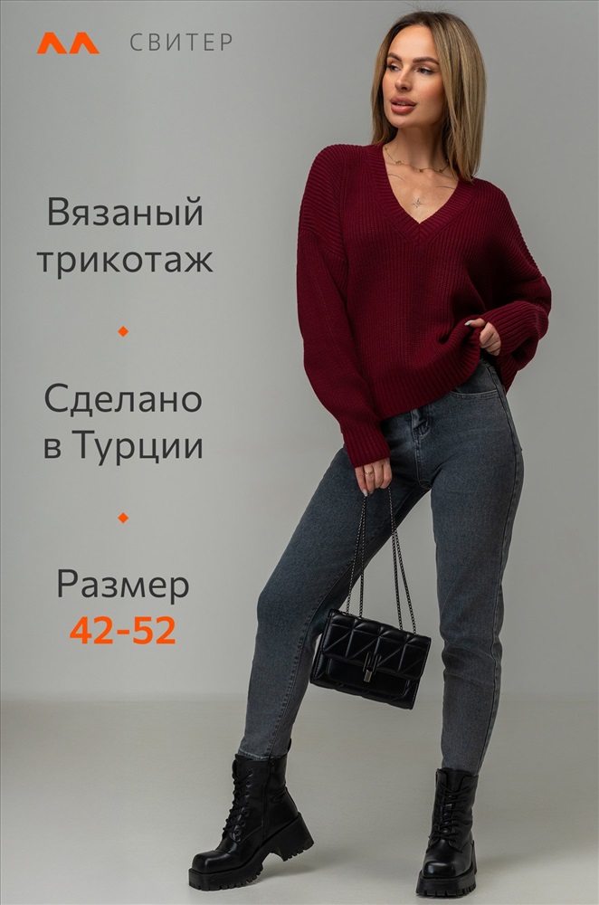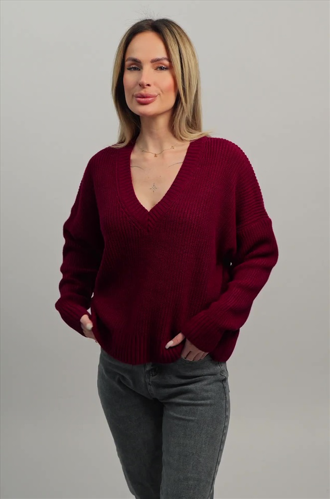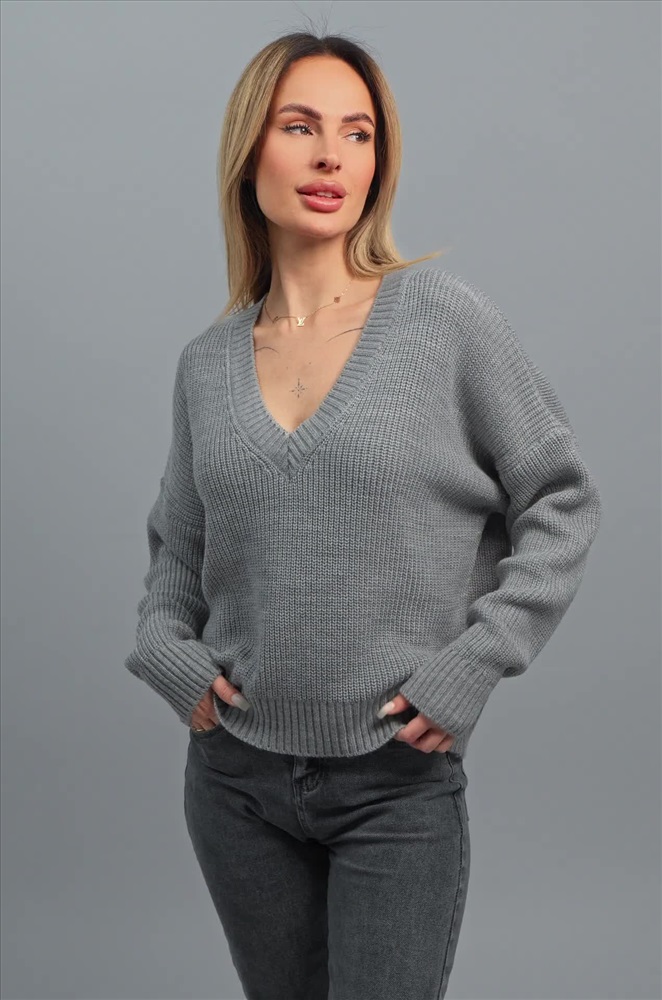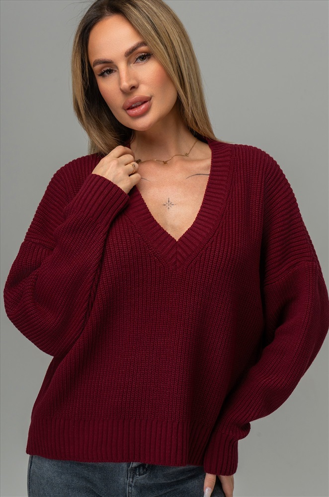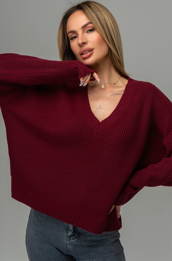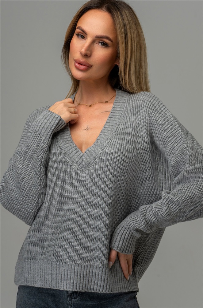Женский удлиненный джемпер оверсайз с V-вырезом Happyfox 10 фото