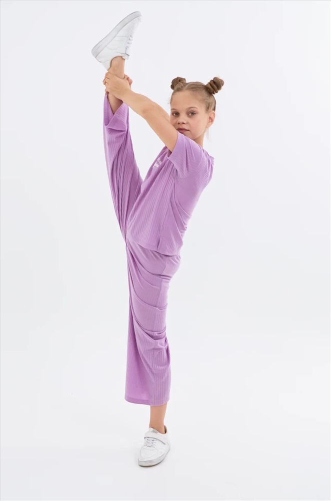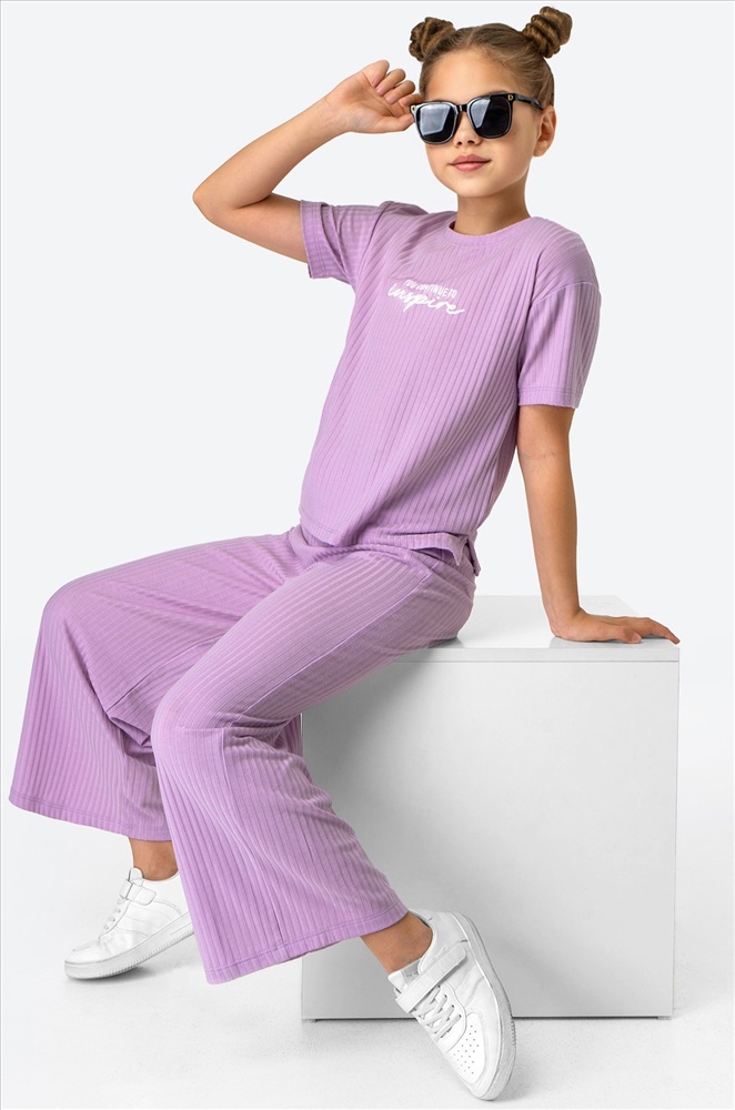 Летний костюм для девочки в рубчик-лапша Happyfox 9 фото