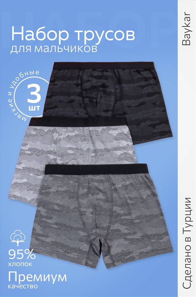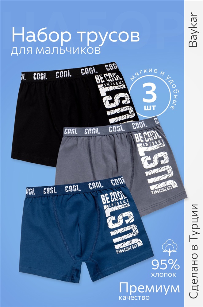 Трусы-боксеры для мальчика 3 шт. Baykar 7 фото